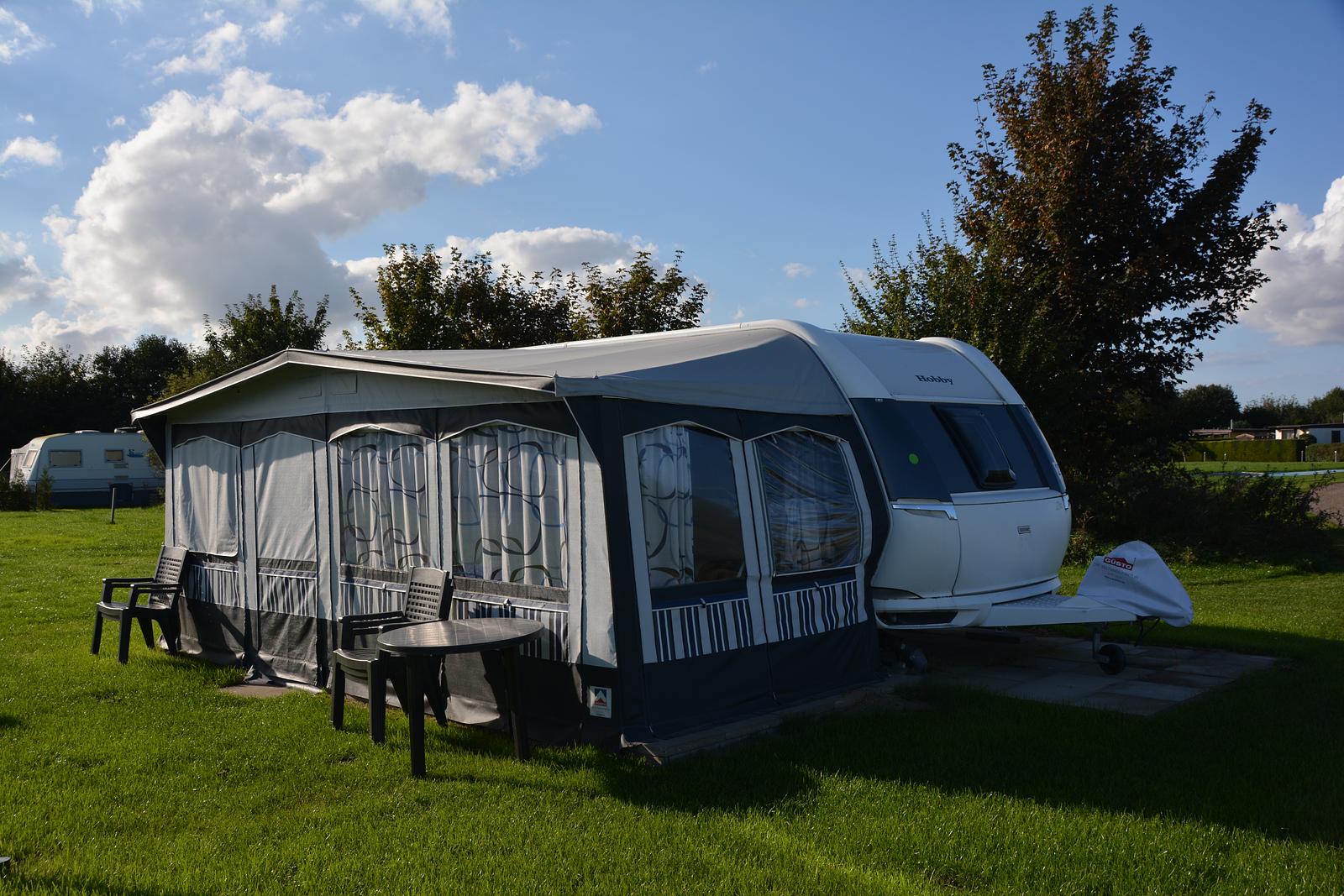 Unsere Mietwohnwagen der Kategorie 5 bieten eine gemütliche und praktische Unterkunft für einen entspannten Campingurlaub. Die Schlafplätze befinden sich im Wohnwagen, während sich die Küche bequem im angrenzenden Vorzelt befindet, ideal für mehr Platz und ein angenehmes Raumgefühl.